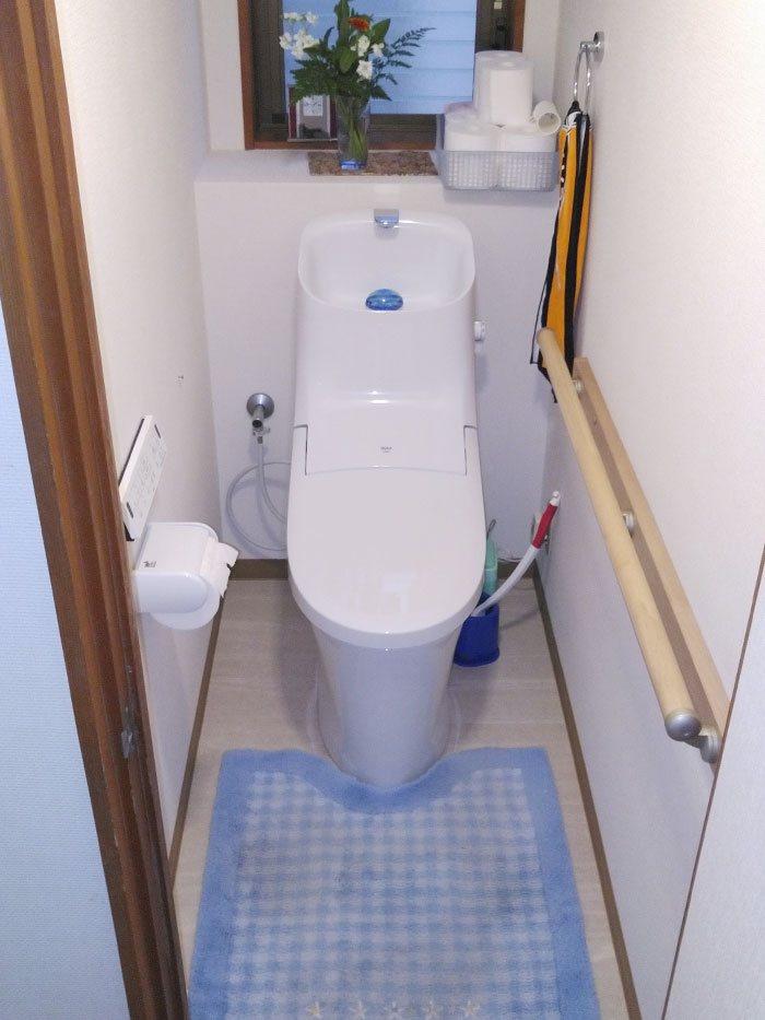 ・余った手すり部材を利用し、トイレにも手すり取り付けをサービスで行いました。